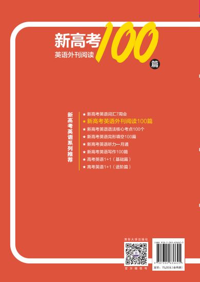 《新高考英语外刊阅读100篇》以教育部全面深化课程改革方针为指导,以落实立德树人根本任务为目标,在“人与自我”“人与社会”“人与自然”三大主题统领下,通过分析高考命题规律,让学生熟悉高考命题特点。