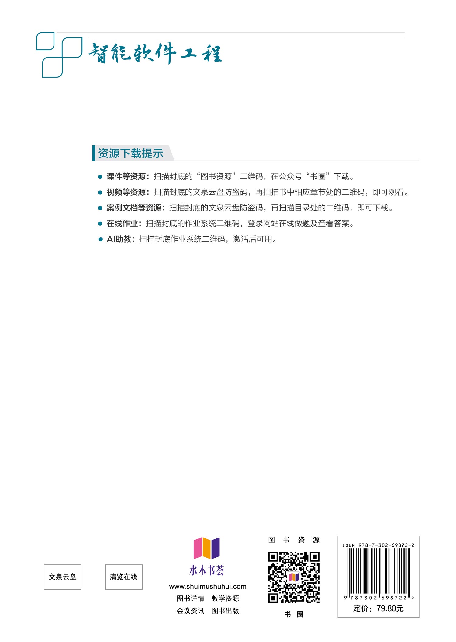 "《智能软件工程》是一部系统化阐述软件工程理论与实践的教材,紧扣智能化时代的软件研发需求,全面覆盖软件工程的核心内容与**发展趋势。全书以软件开发生命周期为主线,详细讲解了需求分析、系统设计、编码实现、测试与质量保障、运维与优化等关键环节,并结合人工智能(AI)、云计算等新兴技术,探讨了AI(特别是大模型、智能体等)技术在软件工程中的应用。通过理论与实践的结合,本书不仅帮助读者掌握传统软件工程的基本方法,还引导其理解如何利用大模型完成需求、设计、编程、测试、运维等工作,从而优化开发流程,显著地提升软件研发的效率与质量。 本书的主要特点在于其内容的前沿性与实用性。书中融入了目前先进的软件工程理念、优秀的科研成果和业界实践,并通过丰富的案例分析和实际操作,展示了AI技术如何赋能软件研发与管理。本书语言简洁流畅,结构清晰,既注重理论深度,又突出实践应用,适合高等院校软件工程、计算机科学及相关专业的学生作为教材使用,同时也为软件工程师、项目经理及技术管理人员提供了宝贵的参考资源。无论是初学者还是有经验的从业者,都能从中获得系统的理论与全方位的实践指导。 "