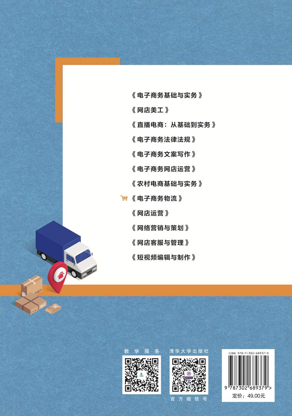 " 本书共10章,主要内容包括电子商务物流基础知识、电子商务物流信息技术、运输、电子商务采购与储存管理、包装与流通加工、装卸搬运、物流配送与配送中心、电子商务物流模式、供应链管理与跨境电子商务物流。 本书配套有教学课件、课程标准、教案、教学大纲、试卷及答案等立体化资源,可有效辅助教学。本书可以作为相关院校电子商务专业的教材,也可以供电子商务物流从业人员参考使用,还可以作为相关培训机构的培训用书。"
