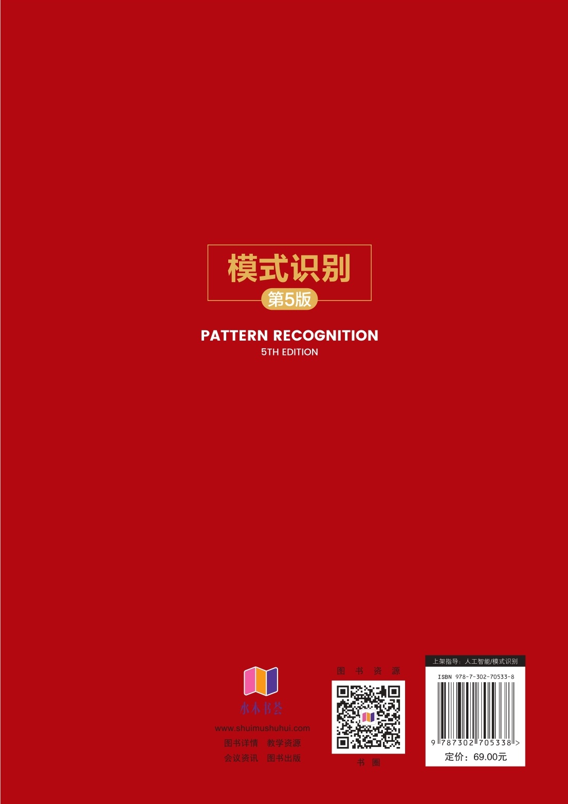 本教材融合国家精品课程多年教学经验和人工智能领域**进展,系统阐述模式识别和机器学习的基础知识、理论框架和主要方法体系,既包括统计模式识别、人工神经网络、统计学习理论与支持向量机等经典内容,也包括深度学习、生成模型等新内容,并通过介绍各类方法的发展脉络和内在联系,力求帮助读者能既“知其然”也“知其所以然”。