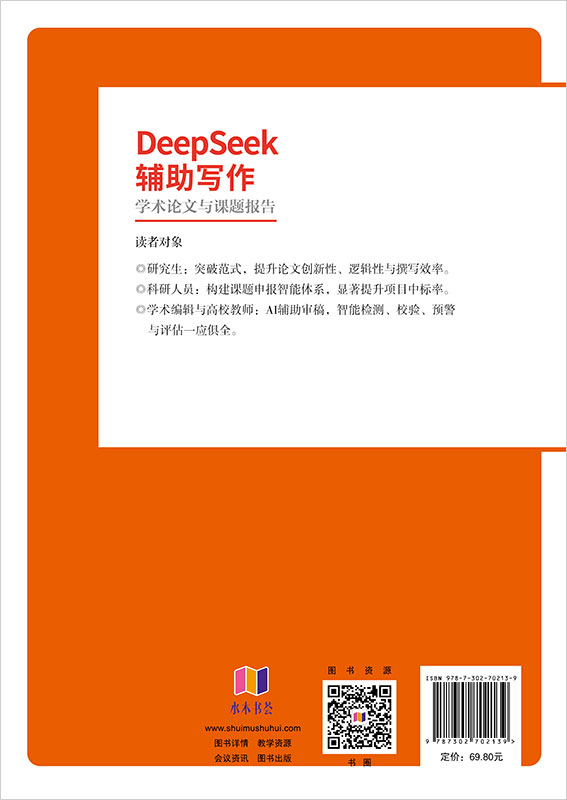 ? 《DeepSeek辅助写作:学术论文与课题报告》为复杂系统问题的解决提供集成化方案——从理论框架构建到数据清洗迭代,形成具备学术严谨性的方法论体系。