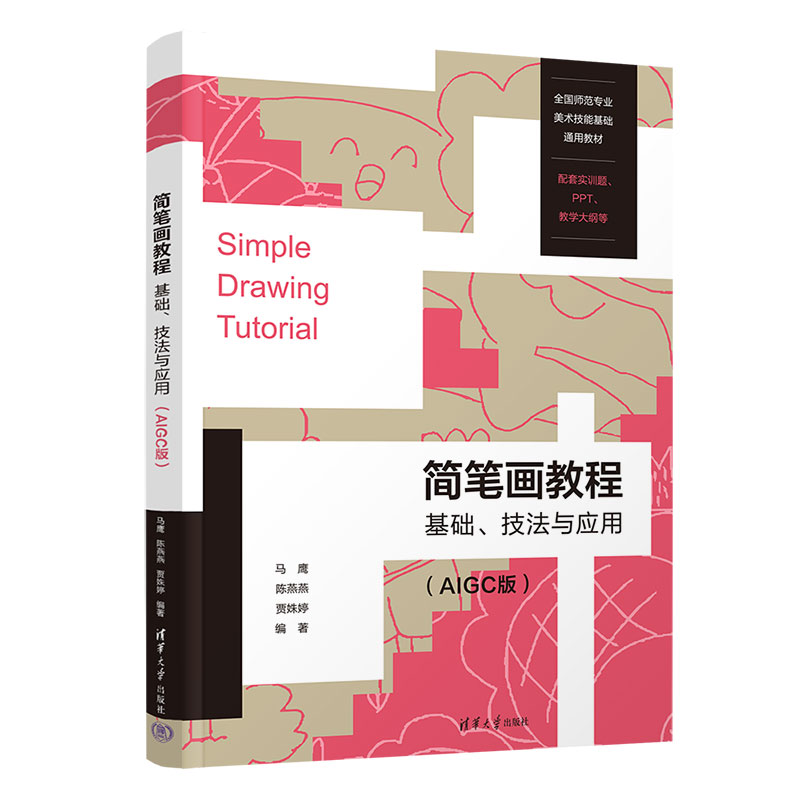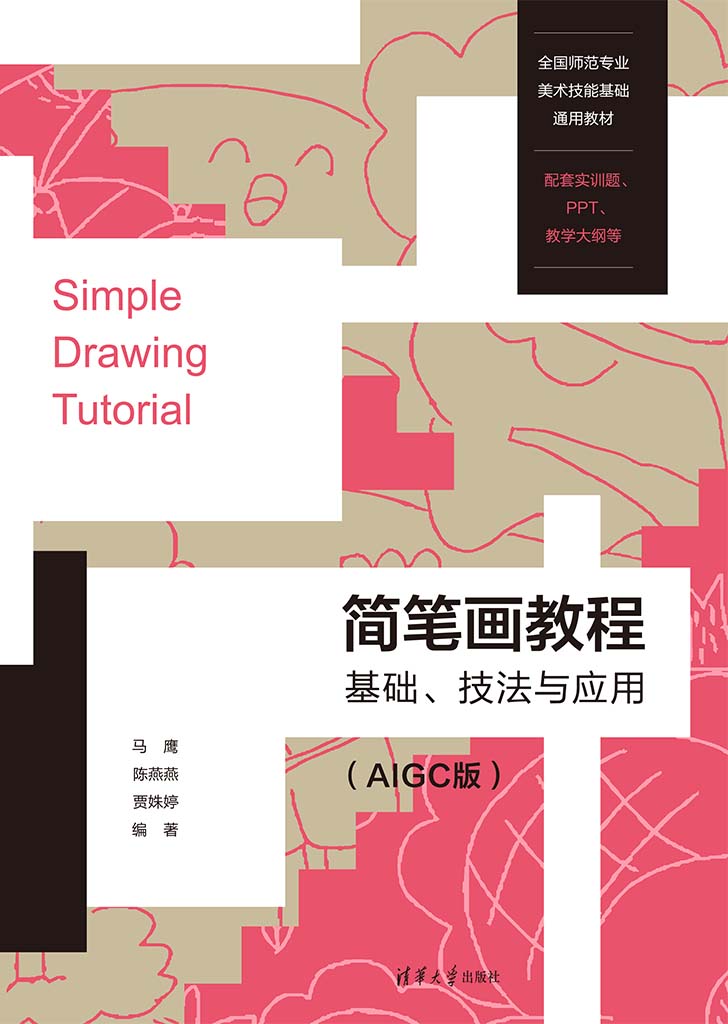 "简笔画技法是每个师范专业学生和中小学幼儿园在职教师必须掌握的""三笔一画""中的绘画基本功。它对学生个人美术技能储备和审美素养的提升,以及教师教育教学质量的提高都有着重要的作用。 《简笔画教程:基础,技法与应用(AIGC版)〉的编写,本着""高质量,实用性""原则,突破了传统简笔画教材重技法与技能而轻表达与表现的局限。围绕简笔画的美学基础,表现技法以及创意应用三大主线,分七章对简笔画之美的内涵与形式,静物,景物,动物,人物等简笔画表现的方法,以及简笔画的应用创意实例,进行了图文并茂的讲解和深人浅出的示例指引。以本书为基础开展教学,能使学生的简笔画作品充满情趣与创意! 本书配套丰富的立体化教学资源,包括教学大纲,配套课程PPT和每章节课堂实训与课后习题,能为教师有效开展教学带来很大便利,可作为学校课程教学,师资技能培训的实用教材使用,也可供绘画爱好者自学参考。"