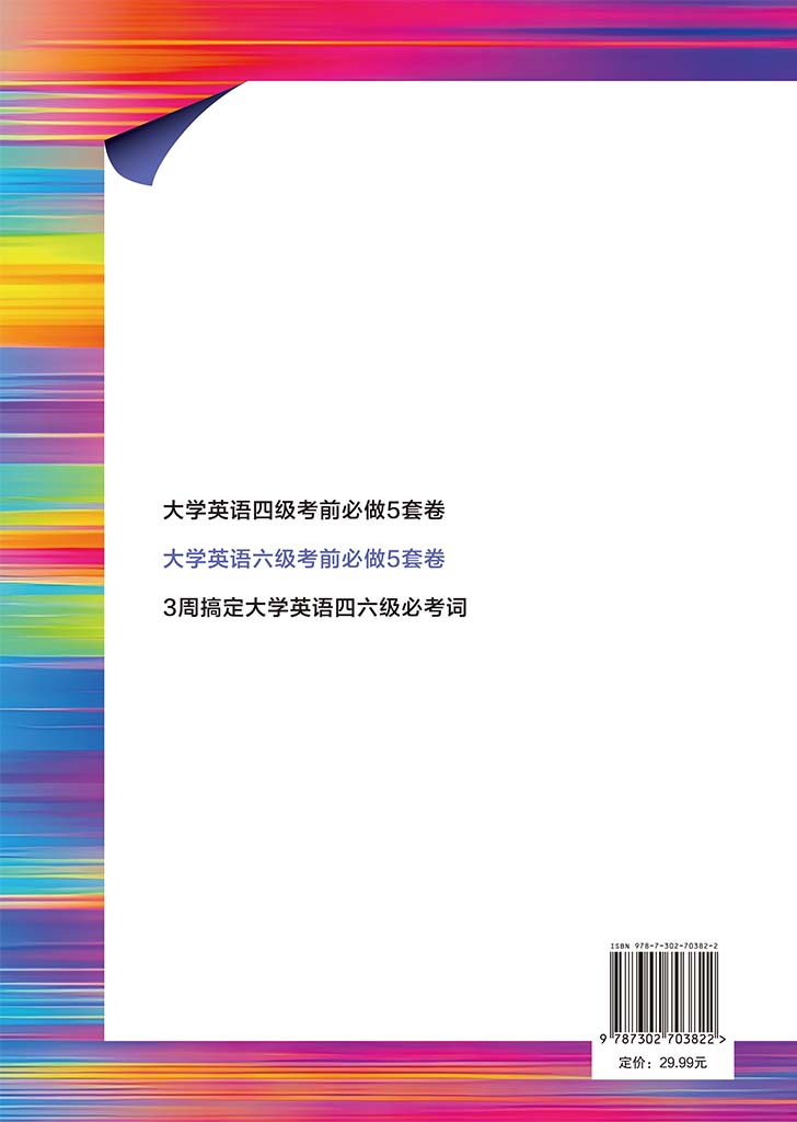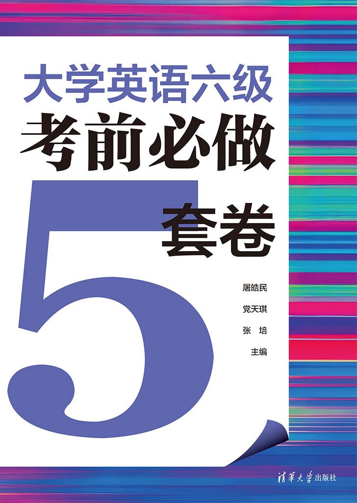《大学英语六级考前必做5套卷》专为大学英语六级考生考前冲刺设计,包含两部分内容。试题部分包含5套全真排版的试卷,帮助考生进行实战演练,熟悉考试流程与题型。解析部分包含答案速查和套卷解析,针对试卷中的写作、听力、阅读和翻译四大题型详尽讲解。其中,写作解析涵盖思路点拨、参考范文和话题词汇,听力解析涵盖解析和听力原文,阅读解析对选词填空、段落匹配和仔细阅读分别进行解题分析与要点指导,翻译解析涵盖译文、难点注释和话题词汇。《大学英语六级考前必做5套卷》旨在通过高质量的考前训练与精准透彻的解析,帮助考生有效查漏补缺,掌握答题方法,提升应试能力。