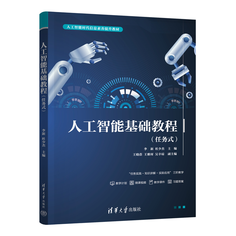 前言 自2023年起,人工智能领域迎来了爆发式发展,ChatGPT、豆包、通义千问和DeepSeek等优秀的大语言模型如雨后春笋般涌现。它们凭借强大的语言理解能力和海量的知识储备,极大地改变了人们的工作和生活方式,也为教育领域带来了新的机遇与挑战,促使教育形态重塑。在此形势下,开发“AI+教育”的教材已成为教育发展的迫切需求,对培养适应时代发展的创新型人才具有重要意义。 回顾当前市场上的人工智能教材,主要存在两种类型。一类教材侧重于人工智能理论的讲授,由于人工智能理论往往较为抽象、复杂,在实际的高职教学过程中,学生理解困难,导致教学效果不佳。另一类教材则聚焦生成式人工智能的实践应用,例如AI生成图片、视频等内容。这类教材虽然具有一定的趣味性,但内容过于简单,许多操作学生通过短视频自学即可掌握,难以满足教学的深度和广度需求,无法真正实现育人目标。 鉴于此,本书旨在填补市场空白,打破现有教材的局限性。编者精心设计教材内容,将人工智能的基本理论与实际应用有机结合。一方面,讲解线性回归、QLEARNING等重要的人工智能算法,为学生构建必备的理论基础; 另一方面,详细介绍生成式人工智能在办公、检索和编程等领域的应用,让学生能够学以致用。通过这种理论与实践相结合的方式,帮助学生全面掌握人工智能知识与技能。 本书具有如下特点。 1. 坚持立德树人,弘扬正能量 从任务、习题的选取和设计,到知识点和技能点的讲授,本书内容将爱国强国、遵纪守法、文明诚信等立德树人元素有机融入各章,弘扬正能量,引导学生树立正确的人生观和价值观。例如,第 4 章 “A...