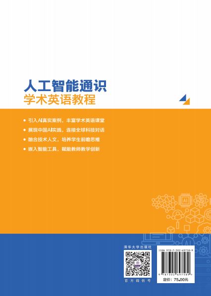 前言 在人工智能技术迅猛发展的时代背景下,我国正加速推进人工智能与教育的深度融合。教育部《高等学校人工智能创新行动计划》强调,高校要“将人工智能素养纳入通识教育,推动人工智能与其他学科的交叉融合”。人工智能通识教育不仅关乎技术认知,更包含伦理反思、跨学科应用及创新思维培养,是新时代人才培养的重要组成部分。基于此,我们精心编写了这本《人工智能通识学术英语教程》,旨在通过将人工智能通识教育与学术英语技能有机结合,为学术英语课程注入新的内容和活力,帮助学生实现国际学术交流能力与人工智能素养的双重提升,为未来科研和职业发展打下坚实基础。 本教材主要特色如下: 1.践行内容与语言融合式学习理念 教材将人工智能知识与学术英语技能深度融合,使内容与语言学习同步进行。学生不仅能通过课文掌握人工智能技术的基本概念和工作原理(如机器学习、深度学习、自然语言处理、计算机视觉、大数据应用等),还能通过配套的学术英语任务巩固提高语言能力。教材为每个单元标注了人工智能素养目标与学术英语技能目标,设计的教学任务也需同时调用内容知识和语言技能,使内容与语言融合式学习理念在教学中有效落地。 2.结合人工智能工具开展教学活动设计 教材深度应用大语言模型对素材进行遴选加工,对学术文本体裁进行规范,对学术语篇难度进行量化评估,开发了形式多样,覆盖阅读、写作、演讲等各项学术英语技能的配套练习,并专门设计了生成式人工智能辅助文献阅读、数据分析、海人工智能通识学术英语教程 报制作、摘要撰写等内容,帮助学生在学术英语课程中同步提高人工智能工具应用能力。 3.适配培养人工智能素养的学术场景 教材内容特别强化人...