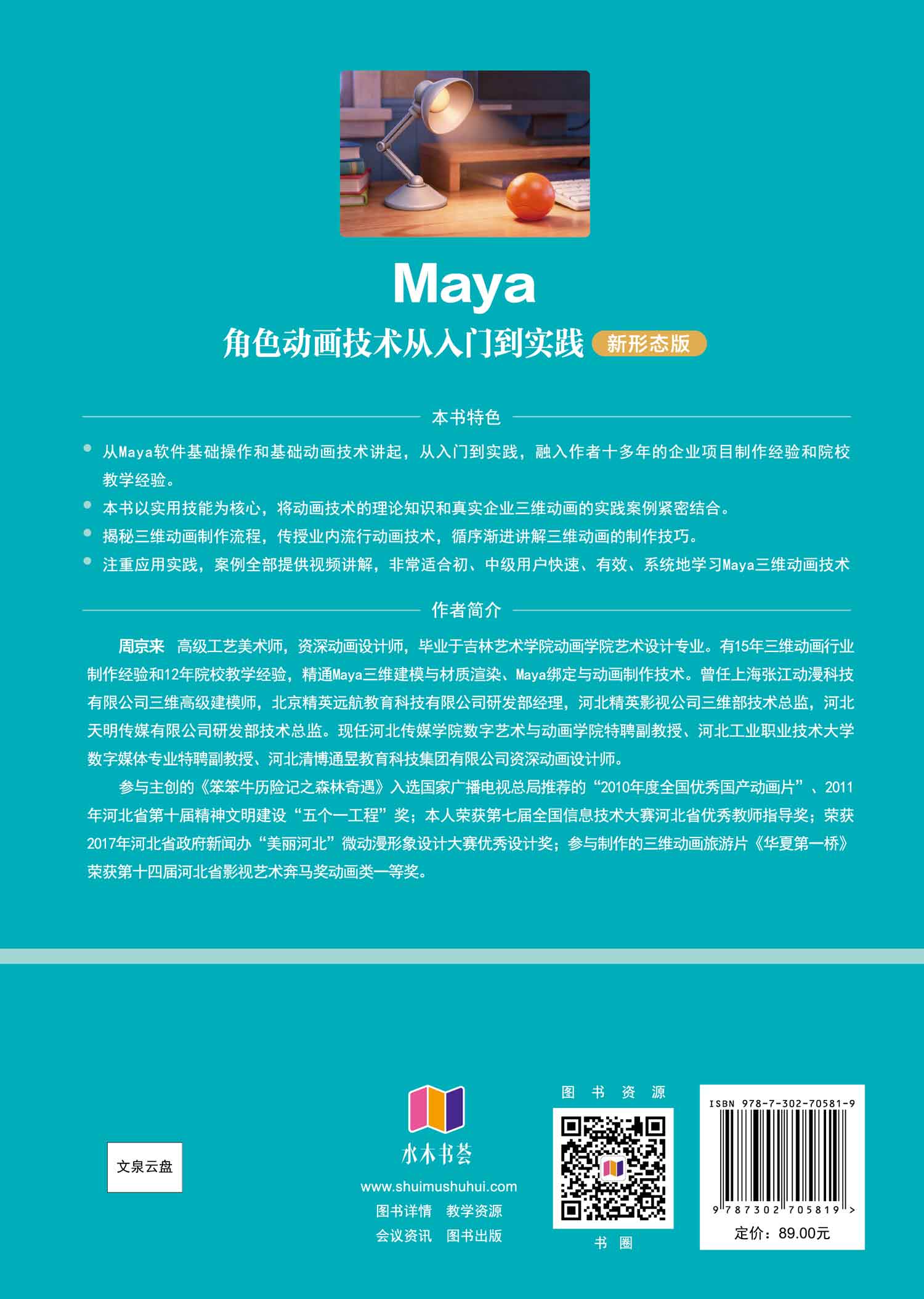 "《Maya角色动画技术从入门到实践(新形态版)》从Maya软件基础操作和基础动画技术讲起,从入门到实践,融入作者十多年的企业项目制作经验和院校教学经验。
