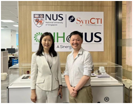 Jiahai Shi助理教授详细介绍了新加坡国立大学合成生物学中心的前沿研究动态和成果。随后,孙宇与Jiahai Shi博士一同参观了实验室,就数字医疗、AI医疗等前沿技术进行了深入交流,共同展望了医工结合以及人类器官再生技术的未来发展趋势。