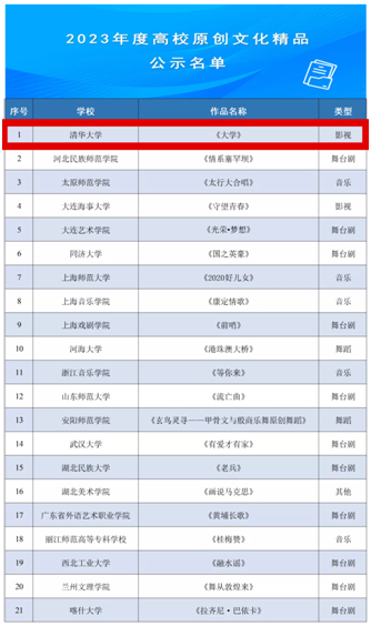 近日,教育部思想政治工作司公布了2023年度高校思想政治工作质量提升综合改革与精品建设项目名单,清华大学报送的《大学》项目成功入选“2023年度高校原创文化精品”,全国仅有21个项目入选。高校原创文化精品是教育部为深入贯彻落实习近平新时代中国特色社会主义思想和党的二十大精神,进一步推动各地各高校落实立德树人根本任务,加快构建高校思想政治工作体系,努力培养堪当民族复兴重任的时代新人的重要项目。