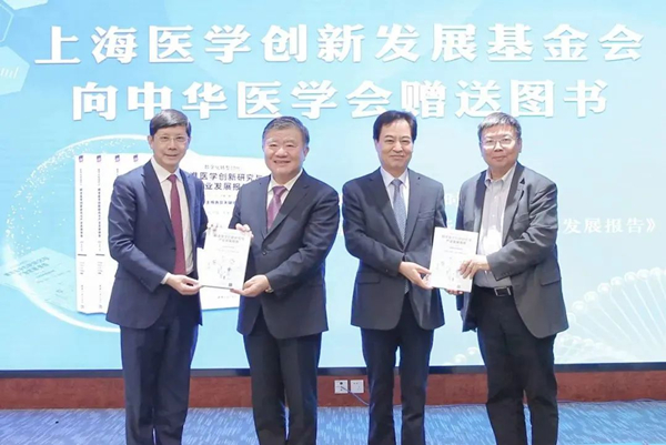 陈竺院士和赵玉沛院士代表中华医学会接受本报告参研专家代表王建安教授和王拥军教授捐赠图书《数字化转型时代:精准医学创新研究与产业发展报告》。