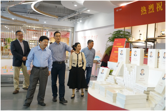 在广东新华,邱显清参观了最美样书陈列展馆,并与广东新华党委书记、董事长蒋鸣涛,总经理何宝贤,总经理助理兼大中专事业部总经理刘璎颉、大中专事业部副总经理罗明辉等进行了全面深入的交流。