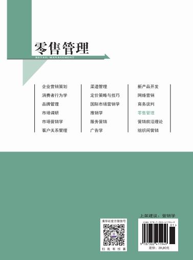 《零售管理》坚持零售管理理论与实际应用的结合,零售管理理论传承与零售管理理创新的结合,零售管理思维模式养成与零售管理技能提升的结合,由长期从事零售管理理论研究的学者与长期从事零售管理实践的高级职业经理人协作编写而成。全书内容分为零售管理概论、零售战略规划、零售选址、零售组织与人力资源管理、零售企业财务管理、零售购物环境管理、商品采购管理、零售定价管理、零售沟通管理、零售服务管理、零售连锁经营管理共十一章。为方便读者理论学习与实践导引,各章都配有引例、知识结构图、课后案例和实训作业。为拓宽读者的知识面、拓深读者的理论深度、引导读者多维思维模式的养成,各章都插入了数量不一的人物小传、小知识、小案例等内容。 本书可作为高等院校市场营销专业、电子商务专业、贸易经济专业本科生教材,也可供零售业从业者、制造业市场经营者及立志将来从事经商、渠道经营管理工作的人自学阅读。