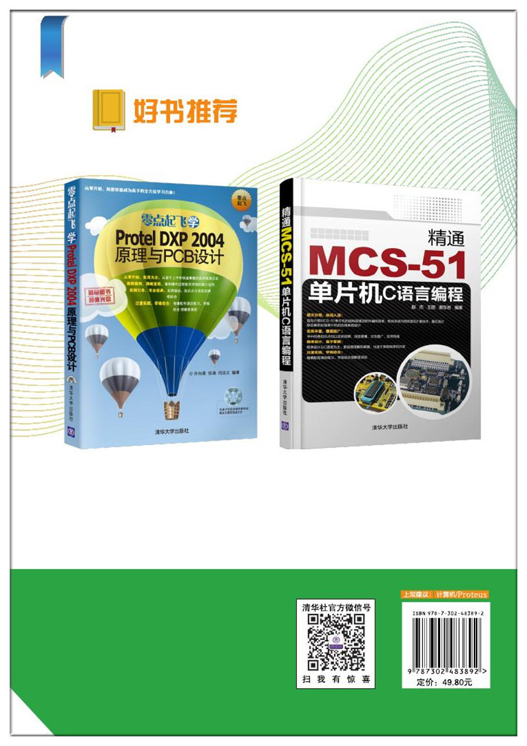 本书基于Proteus 7.8 SP2版本,以实例为主线介绍Proteus的入门知识以及在电子线路设计中的实际应用,包括Proteus软件的基本操作方法、模拟和数字电路的仿真及分析、单片机仿真的知识以及与其它开发工具进行联合调试的技术,最后通过一个工程实例介绍了使用Proteus ARES进行印刷电路板设计的有关内容。