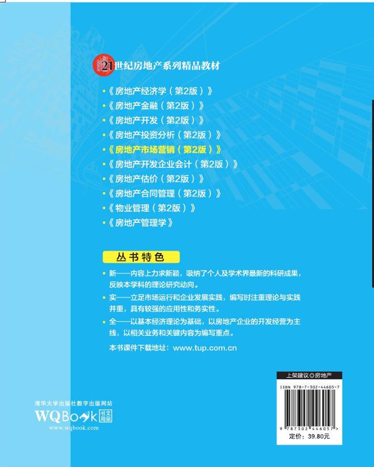 第2版前言 本书自2010年12月首次出版以来,已被六十多所本科院校、职业学院选作教材,目前已经经过第六次印刷,获得读者的广泛好评,实现了我们最初写作本教材的目的。但是,考虑到目前国内经济形势日新月异,房地产市场状况已发生很大变化,新的营销方式和手段层出不穷,原有教材内容已显陈旧,因此我们决定进行全面修订。 教材修订过程依然坚持“学以致用”“理论联系实际”的原则。在基本保持原教材框架结构不变的情况下,补充了最新数据,增加了可操作性的内容,更便于读者深入掌握有关理论、了解当前的房地产市场行情和新的营销手段。另外,随着互联网的发展,房地产网络营销得到快速发展;房地产大盘以独有的优势产生了巨大的社会影响力,引领着城市新的生活方式与居住方式。因此,本次教材修订增加了“房地产网络营销”和“房地产大盘开发与营销”两章内容,从而使得修订后的教材内容更加丰富,可读性更强。 本书的修订过程中,除了第1版中的同行专家、业内人士继续给予大力支持外,青岛建业集团前期策划主管庞如晓先生从实践的角度,给本书提供了很多中肯的建议,在此对他们的热心帮助表示深深的谢意。 当然,受水平和能力限制,修订后的教材依然可能存在一些错误或不足,欢迎读者批评指正,以便我们及时纠正完善,直至做出精品。 编 者 2016年3月