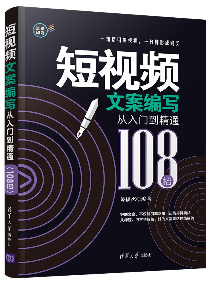 《短视频文案编写从入门到精通(108招)》包括10章专题内容、108个干货技巧,从短视频文案的市场调研、标题撰写、视频策划、脚本设计等内容切入,帮助您从短视频文案策划新手成为高手。 《短视频文案编写从入门到精通(108招)》具体内容包括9种市场调研方式,为文案策划做好准备;14种视频文案撰写技巧,为短视频内容画龙点睛;9种视频策划方法,打造热门剧本;12种视频情节,利用常见套路吸引粉丝;11种引流话术,多渠道引爆流量;10种评论话术,提高粉丝黏性;11种直播策划,挖掘团队价值;12个直播内容,进行精准引流;10种直播标题,提高主播人气;10种带货话术,激发用户的购买欲望。 《短视频文案编写从入门到精通(108招)》结构清晰,案例丰富,适合对短视频文案感兴趣的读者阅读,特别是快手、抖音、B站、视频号等平台的运营者,同时也可作为各院校的指导教材。