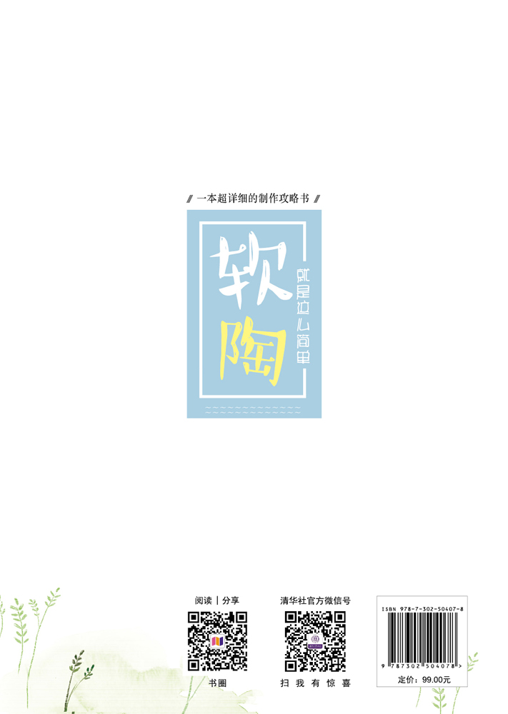 很多人认为,软陶就是橡皮泥,其实并不是。软陶在烤制定型之前可以一直深入地塑形,以达到你想要的形态。 本书中,四位作者详细介绍了软陶的特性、使用方法、常用的工具等,并系统介绍了多肉植物、饰品、小萌物、Q版人物等多种类型的作品。以特别“啰嗦”的文字旁白,为读者解答各个阶段的制作方法以及需要注意的事项。 在快节奏的现代社会里,玩软陶可以让我们匆忙的脚步放慢一些,静静地享受一下慢时光,完全沉浸在自己的世界里,将自己若干分之一的生命物化成自己最爱的样子……