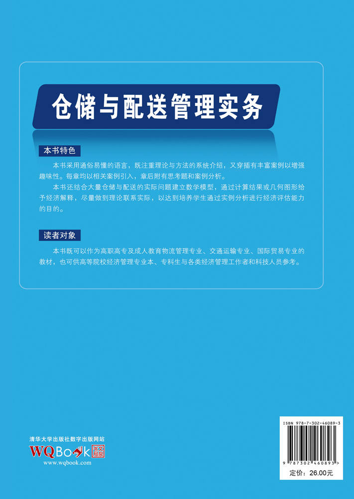 本书还结合大量仓储与配送的实际问题建立数学模型,通过计算结果或几何图形给予经济解释,尽量做到理论联系实际,以达到培养学生通过实例分析进行经济评估能力的目的。本书具有广泛的适用性,既可以作为高职高专及成人教育物流管理专业、交通运输专业、国际贸易专业的教材,也可供高等院校经济管理专业本、专科生与各类经济管理工作者和科技人员参考。