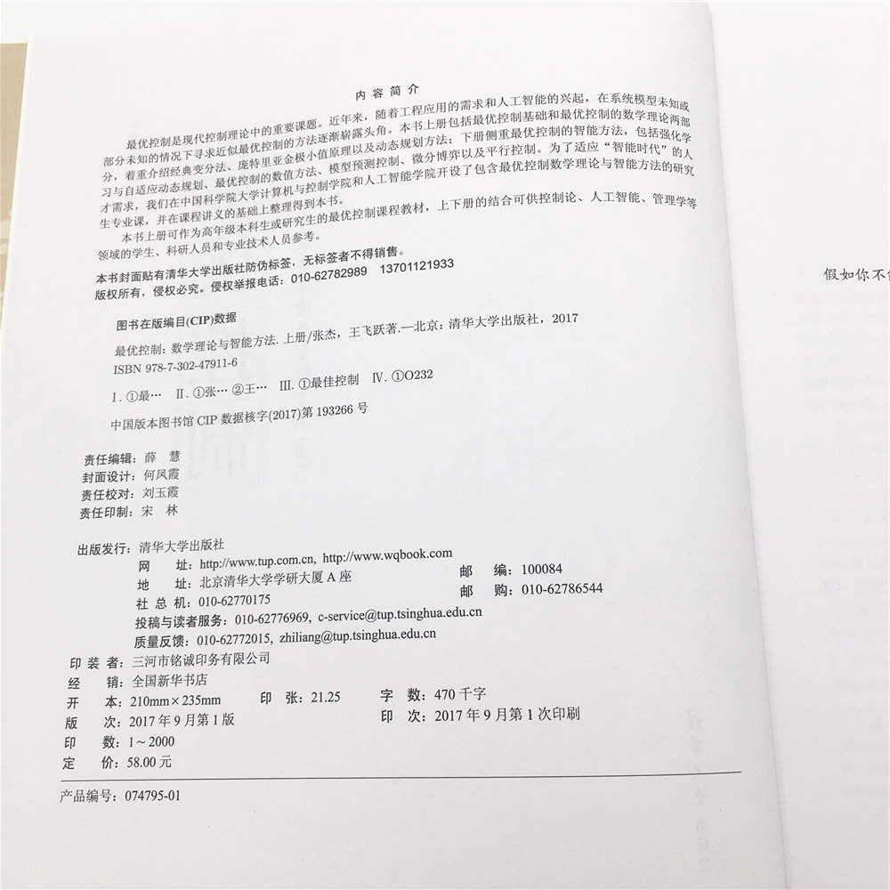 最优控制是现代控制理论中的重要课题。近年来,随着工程应用的需求和人工智能的兴起,在系统模型未知或部分未知的情况下寻求近似最优控制的方法逐渐崭露头角。本书上册包括最优控制基础和最优控制的数学理论两部分,着重介绍经典变分法、庞特里亚金极小值原理以及动态规划方法;下册侧重最优控制的智能方法,包括强化学习与自适应动态规划、最优控制的数值方法、模型预测控制、微分博弈以及平行控制。为了适应“智能时代”的人才需求,我们在中国科学院大学计算机与控制学院和人工智能学院开设了包含最优控制数学理论与智能方法的研究生专业课,并在课程讲义的基础上整理得到本书。本书上册可作为高年级本科生或研究生的最优控制课程教材,上下册的结合可供控制论、人工智能、管理学等领域的学生、科研人员和专业技术人员参考。
