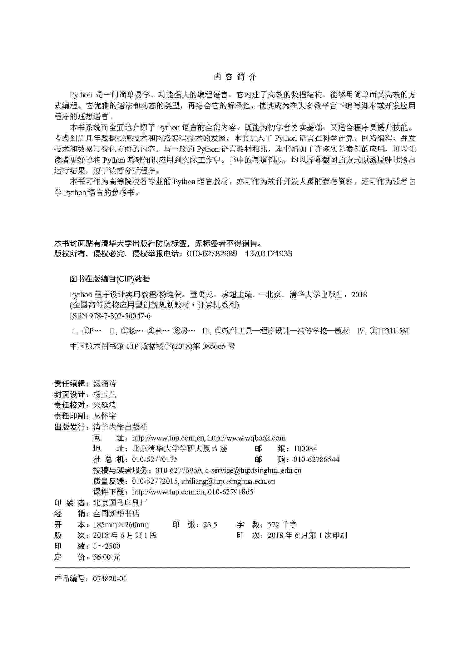 《Python程序设计实用教程》以目前流行的Python 3为基础,适当兼顾Python 2.x,既讲解Python的基础知识,又适当介绍Python在各个方面的应用,因而,可以满足不同层次读者的需要。