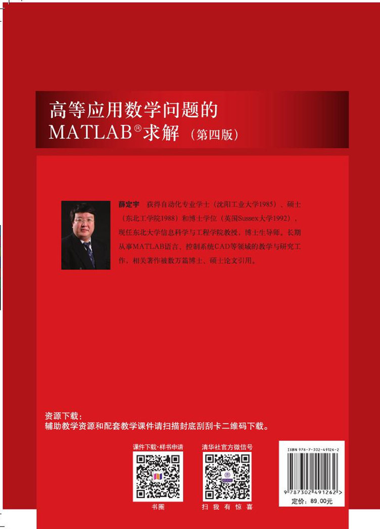 第四版前言 科学运算问题是科学与工程中的重要问题。在当前一般高校理工科课程设置中,高等数学、线性代数、概率论与数理统计等为必修课程,有些专业还有复变函数、积分变换、最优化、数值分析等选修课程。有了这些数学基础,很多专业课程相应的数学模型就可以建立起来了,而这些数学问题的求解就成了不容回避的问题了。 在总结多年实际教学经验的基础上,作者曾在首届MathWorks亚洲研究与教育峰会(2014年11月,东京)上提出了数学问题的“三步求解方法”,其第一步就是用简单的语言理解要求解数学问题的物理意义,第二步是如何用计算机能接受的方式将数学问题输入给计算机,第三步就是调用恰当的函数将数学问题的解得出来。有了这样的思路,则普通研究者可以直接利用计算机工具在短时间内解决已经学习过甚至根本没有学习过的数学分支的应用问题。 本书书名中的“高等应用数学”不等于“高等数学”,而是预期尽可能广地覆盖理工科数学分支,其对数学分支的涵盖范围是非常广泛的。书中涉及了大量的数学公式,作者没有期望读者能读懂这些公式,大概理解它们的物理意义就足够了,侧重点还是应该放在学习基于MATLAB的实际求解方法。尽管较好理解数学公式可能对学习数学问题的求解方法有所帮助,但这不是必要的。 虽然数学问题的求解在以后的课程学习与科学研究中是不可避免的,那些自认为数学基础比较薄弱的读者也不必担心,因为本书介绍的方法是尽可能地避开烦琐的、深奥的数学,将数学问题及其求解过程用MATLAB能够接受的形式全盘推给计算机去求解,充分发挥计算机的潜能去替你完成任务,最终收获问题的解。尽管这样的方式有时得不到一些数学家的接受与认可,但这对...