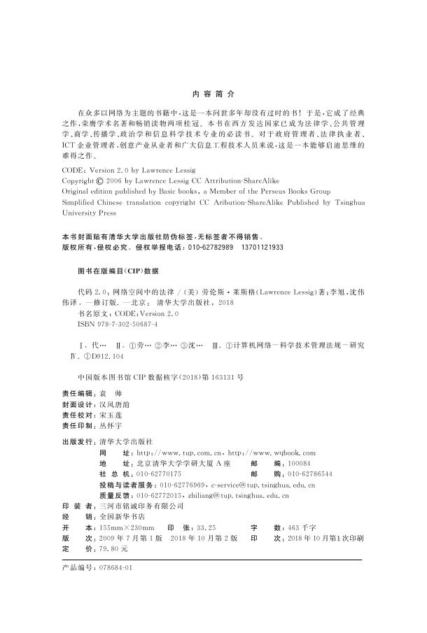 本书是对一本旧作的翻新——事实上,按互联网时代的计时标准,可以说是对一本古籍的翻新。早在1999年,《代码》第一版就已问世。第一版诞生于一个与如今大相径庭的时代,而且,在许多方面,它与当今时代格格不入。正如第一章所述,当时的主流观点是互联网无政府主义: 现实空间的种种规制不应延伸到网络空间,政府不应干涉人们的网络生活。因此,网络生活将被归为另类,并将摆脱现实生活中的种种规制,《代码》第一版正是对当时这种观点的反驳。 近年来,上述主流观点已逐渐退出历史舞台。而互联网无政府主义者的信心,也随之瓦解。互联网将持续不受规制这一观点,甚至说这一欲望,业已消失殆尽。于是,在接到更新此书的邀请时,我面临一个两难的选择: 为了其能够在这个截然不同的新时代中,与时俱进而又具备可读性,我是重写新书呢,还是更新旧作呢? 我选择了后者。这样的话,第一版的基本架构以及一些前沿的论证将得以保留。不过,具体案例的设计方面我做了改动,同时,我还把文字修改得更加明晰易懂(至少我希望如此)。此外,我还拓展了部分章节中的论据,并增加了摘要链接,以使本书能与第一版融为一体。 然而,有一件事情我并没有做,那便是将其他人的相关研究纳入本书。我也没有屈从这样一种极度强烈的诱惑: 重新写一本书来回应针对第一版的评论,无论这些评论是赞成,还是反对。我在脚注中点出了一些评论,欲知我如何回应这些评论的读者,可以按图索骥。不过,即便是在本书第一版发表之时,它也仅仅是那场大辩论中的一小部分。因此,你不应该只读我的著述,而无视后续的杰作。有两本书对这里的论述做出了恰当的补充,分别是杰克·戈德史密斯(Jack Goldsmith)和...