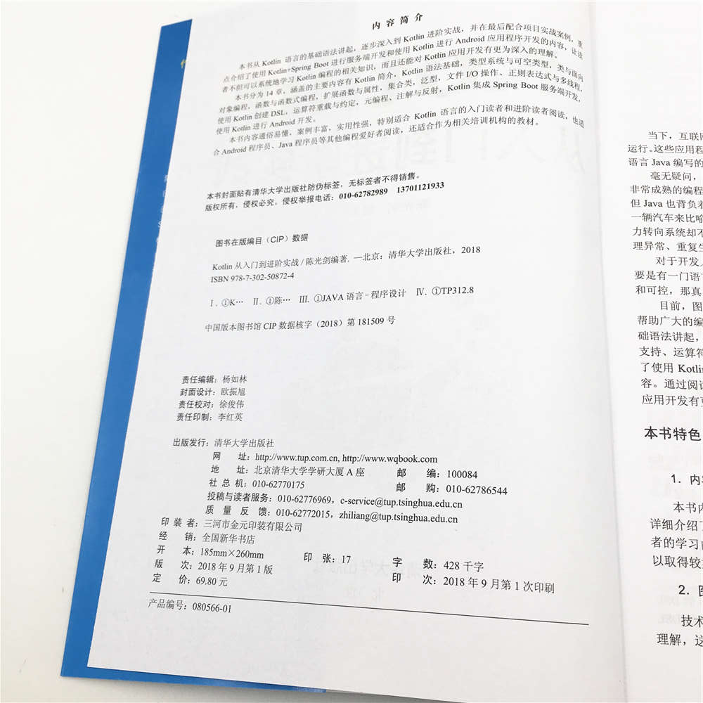 《Java编程思想》的作者Bruce Eckel认为,Kotlin或将取代Java《Kotlin从入门到进阶实战》是阿里巴巴资深程序员呕心沥血之作,揭秘Kotlin编程的精华《Kotlin从入门到进阶实战》全面涵盖Kotlin基础语法、进阶实战技巧和项目开发等实用内容《Kotlin从入门到进阶实战》重点介绍了Kotlin语言的特性,包括可空类型、安全操作符、面向对象编程、Lambda表达式、函数式编程、扩展函数及创建DSL等,并都给出了丰富的代码示例。《Kotlin从入门到进阶实战》详细介绍了编程实践中较为常用的元编程与注解反射,以及运算符重载与约定等内容。《Kotlin从入门到进阶实战》详细地介绍了两个项目实战案例:使用Kotlin+Spring Boot进行服务端开发;使用Kotlin开发Android应用程序。 陈光剑 笔名一剑。资深程序员,现就职于阿里巴巴集团。有丰富的平台开发经验,曾经参与了多种平台工具的开发。使用Java、Android、Scala、Groovy和Kotlin等语言或工具进行领域建模、架构设计和工具开发等,积累了大量经验。善于总结,乐于分享,发布过大量技术文章,并著有《Kotlin极简教程》一书,深受读者好评。