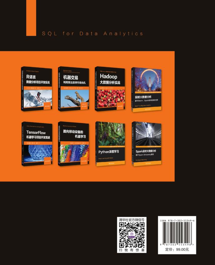 本书详细阐述了与SQL数据分析相关的基本解决方案,主要包括理解和描述数据、数据分析与SQL基础知识、SQL数据准备、数据分析的聚合函数、数据分析的窗口函数、导入和导出数据、利用复杂数据类型进行分析、高性能SQL、利用SQL获取洞察结果等内容。此外,本书还提供了相应的示例、代码,以帮助读者进一步理解相关方案的实现过程。 本书适合作为高等院校计算机及相关专业的教材和教学参考书,也可作为相关开发人员的自学教材和参考手册。