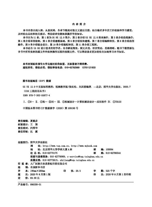 全书分为12章,第1章介绍了UG NX 12.0简介、第2章介绍了UG NX12.0基本操作、第3章介绍了曲线操作、第4章介绍了草图绘制、第5章介绍了建模基础、第6章介绍了实体建模、第7章介绍了编辑特征、第8章介绍了曲面操作、第9章介绍了装配特征、第10章介绍了工程图、第11章介绍了茶壶设计综合实例、第12章介绍了齿轮泵设计综合实例。在介绍的过程中,注意由浅入深,从易到难,各章节既相对独立又前后关联,在介绍的过程中,作者根据自己多年的经验及学习的通常心理,及时给出总结和相关提示,帮助读者及时快捷地掌握所学知识。