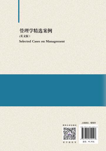本书是在中国企业面对目前各类机遇与挑战,不断重塑竞争优势,提升市场价值的背景下精 心编写的一部全英文案例教材。江苏大学管理学院中外案例研究团队通过资料收集、实地考察和 调研等手段,为读者精选出来自制造、零售、医疗服务等产业的各类典型管理学英文案例,主要 函盖战略管理与营销、组织与创业、领导力与人力资源管理、组织创新管理、业务控制系统和企 业伦理等六个章节十四个案例,多角度、全方位展现中国企业发展的独特路径。 本书用英文编写,语言浅显易懂,可作为高等院校管理学专业案例教材,也可作为MBA(工商管理硕士)及各级经济管理人员培训的案例教材。
