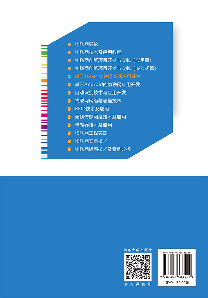 综合运用、实战检验。最后通过智慧园区的串口篇和云平台篇的综合开发,让读者将各部分知识综合使用、融会贯通,充分掌握Java物联网程序设计基础知识。