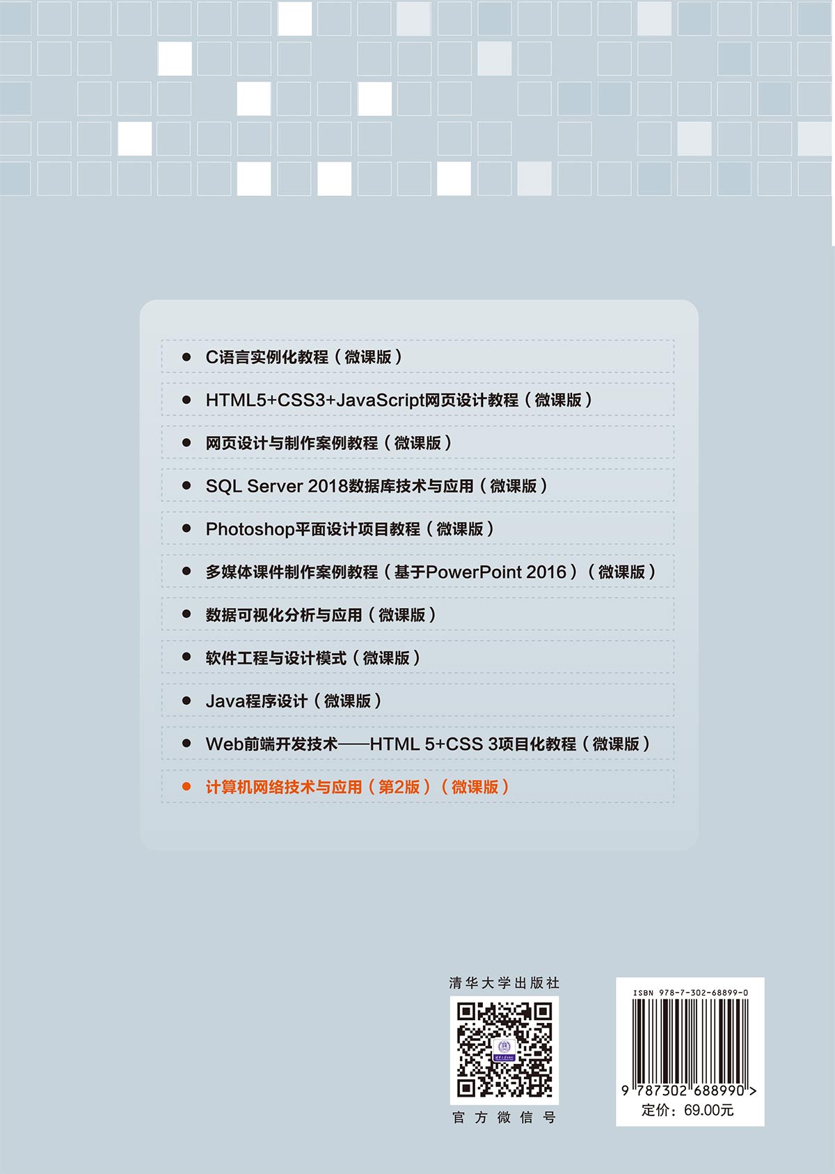 《计算机网络技术与应用(第2版)(微课版)》以网络体系结构为框架,紧密结合网络新技术,按照先总后分的思路系统地介绍了计算机网络的基本原理和相关技术,并结合网络的实际应用场景设计了大量的实训案例,内容全面,结构安排合理。教材遵循学生的认知规律,系统安排章节,逐步深入;科学设计实训任务,把计算机网络的基础知识有机融入到具体的工作任务中,以任务驱动方式,提高学生的实践技能和职业素养;以实际应用案例为载体,致力于培养高素质的复合型人才,深化产教融合。