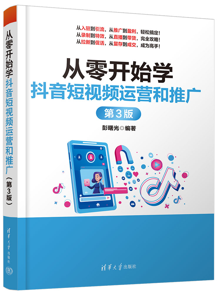 《从零开始学抖音短视频运营和推广(第3版)》共分为11章,包括初步了解,快速入门;快速打造红人IP;爆款视频,稳上热门;吸粉技巧,爆发引流;投放DOU+,管理技巧;站外引流,聚焦流量;打造爆款,内容引流;有偿广告,推广盈利;线上线下,商业盈利;直播卖货,提升盈利;视频带货,提升销量等内容。帮助运营者全面掌握利用短视频引流盈利的各种运营和推广技巧,从入门新手变成抖音短视频运营和推广的高手! 《从零开始学抖音短视频运营和推广(第3版)》适合想要学习抖音短视频运营和推广的新手,或是自媒体和短视频相关行业的从业人员。