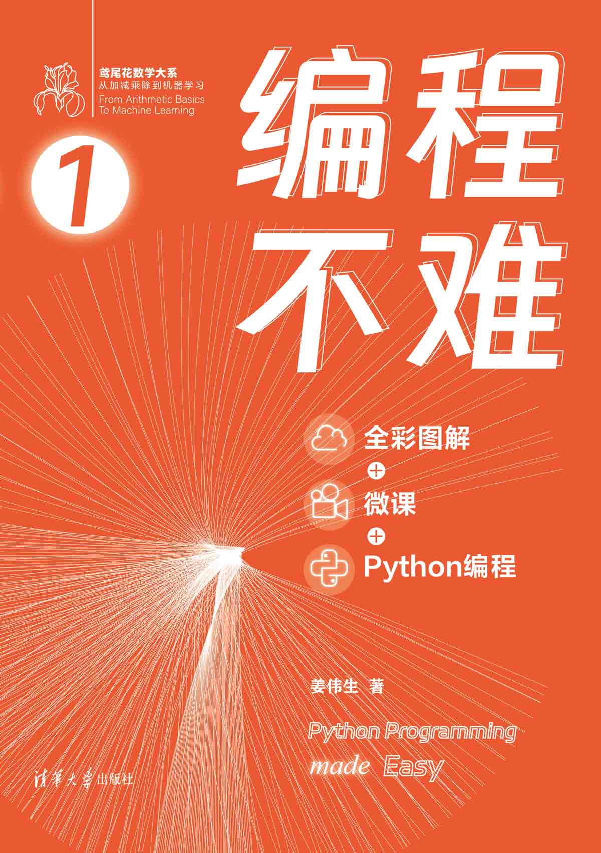 《编程不难:全彩图解+微课+Python编程》是“鸢尾花数学大系—从加减乘除到机器学习”丛书的第一册,也是“编程”板块的第一册, 着重介绍如何零基础入门学 Python 编程。虽然《编程不难:全彩图解+微课+Python编程》主要讲解 Python 编程,但是也离不开数学。《编程不难:全彩图解+微课+Python编程》尽量 避免讲解数学概念公式,而且用图形和近乎口语化的语言描述程序设计、数据分析、机器学习背后常用的 数学思想。 《编程不难:全彩图解+微课+Python编程》分为预备、语法、绘图、数组、数据、数学、机器学习、应用八大板块, 共 36 章, 内容“跨度”极大! 从 Python 基本编程语法,到基本可视化工具,再到各种数据操作工具,还介绍常用 Python 实现的各种复 杂数学运算,进入数据分析和机器学习之后,还讲解如何搭建应用 App。我们可以把《编程不难:全彩图解+微课+Python编程》看作从 Python 编 程角度对“鸢尾花书”全系内容的总览。 《编程不难:全彩图解+微课+Python编程》提供代码示例和讲解,而且提供习题,每章还配套 Jupyter Notebook 代码文件(Jupyter Notebook 不是可有可无的,而是学习生态的关键一环, “鸢尾花书”强调在 JupyterLab 自主探究学习才能提高大家 编程技能)。《编程不难:全彩图解+微课+Python编程》配套微课也主要以配套 Jupyter Notebooks 为核心,希望读者边看视频,边动手练习。 《编程不难:全彩图解+微课+Python编程》读者群包括所有试图用编程解决问题的朋友,尤其适用于初级程序员进阶、高级数据分析师、机器学习开发者。