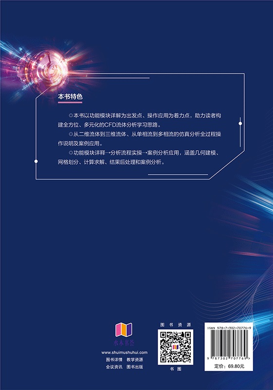 "? 《ANSYS CFD流体仿真建模与应用》以功能模块详解为出发点、操作应用为着力点,助力读者构建全方位、多元化的CFD流体分析学习思路。
