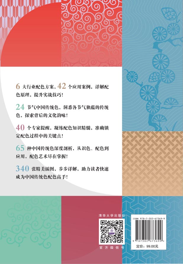 (4) 深度的文化融合。本书不仅关注传统色的配色技巧,更注重将传统色与中国的历史、文化、传统习俗相结合,深刻阐释这些色彩的文化内涵。
