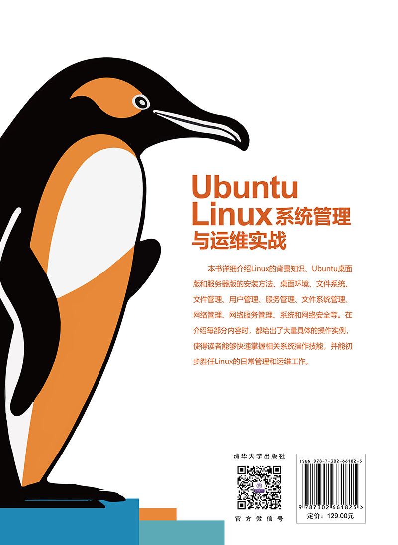 Linux是目前***的操作系统之一,而Ubuntu是众多Linux发行版中的佼佼者。它以开源、稳定和广泛的社区支持等特点,被广泛用于桌面系统、服务器和二次开发的生产环境。《Ubuntu Linux系统管理与运维实战》使用Ubuntu 22.04 LTS版本,通过由浅入深、循序渐进的方式讲解Ubuntu系统管理与运维技能。 《Ubuntu Linux系统管理与运维实战》共分13章,内容包括了解Ubuntu、安装Ubuntu、桌面环境、文件系统基础知识、文件和目录管理、用户和权限管理、系统启动和关闭、服务和进程管理、软件包管理、磁盘和文件系统管理、高级网络管理、网络服务管理以及系统安全。 《Ubuntu Linux系统管理与运维实战》内容精练、重点突出、实例丰富,适合Linux初学者、运维人员、应用开发人员、网络管理人员和应用部署人员作为参考书。《Ubuntu Linux系统管理与运维实战》也可作为高等院校或高职高专Linux系统管理与运维课程的教材。