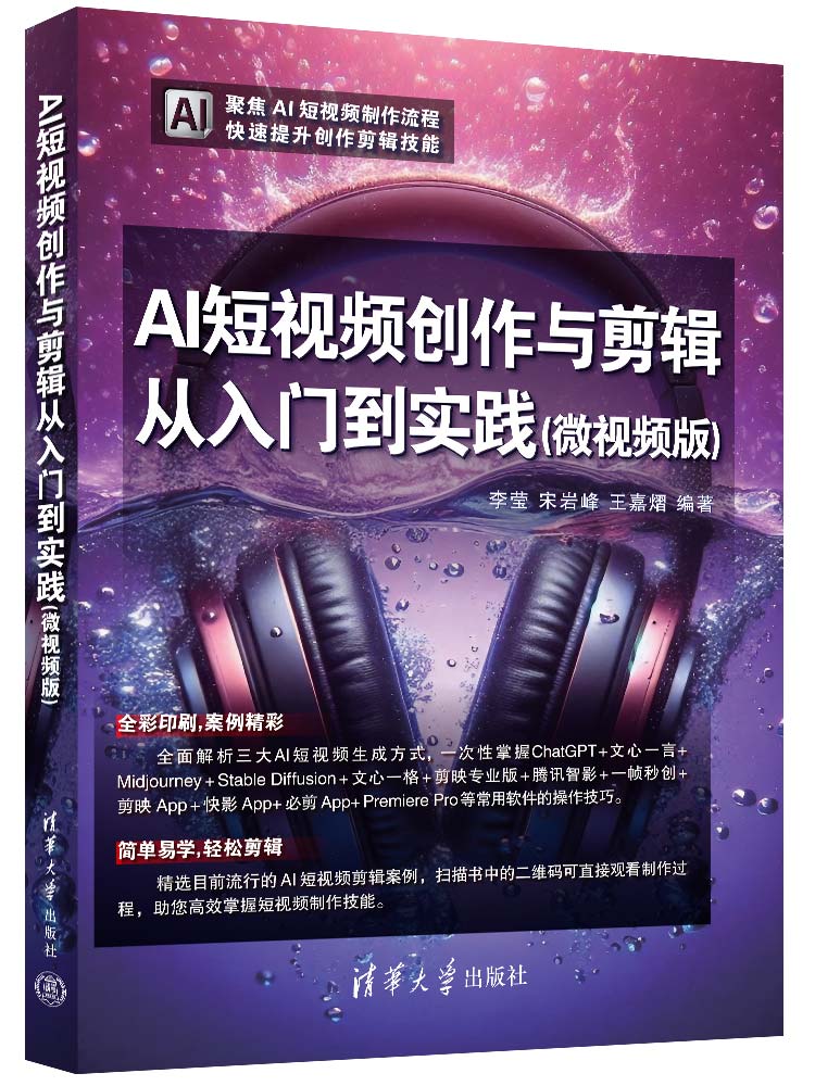 前 言 在这个数字信息爆炸的时代,人工智能(Artificial Intelligence,AI)不仅彻底改变了我们工作的方式,也新开了我们获取知识和娱乐的渠道。AI短视频,作为新兴的知识传播方式和娱乐方式,正迅速成为人们获取信息的重要途径。 因此,编写一本关于如何制作AI短视频的书籍,不仅是对AI技术的记录,更是对教育方式未来形态的一种探索。 面对未来,我们有理由相信,AI短视频将以其独特的魅力,成为人类文化交流和知识传播的重要力量。随着AI技术的进一步发展,我们对于知识的获取和分享方式将会有更加丰富和多样的选择。 本书合理安排知识结构,从AI短视频的概念出发,以AI 创作文案为第一步,详细探讨AI短视频制作的各个阶段,包括文案策划、图片制作、图文转视频,以及如何利用AI工具剪辑和优化视频等内容。书中内容凝结着教育者的经验和实际应用者的体会,希望能够为广大读者提供一条快速掌握AI短视频创作与剪辑技术的有效途径。 本书全彩印刷,案例精彩实用。书中案例操作教学视频可供读者随时扫码学习。此外本书提供案例配套的素材文件,读者可以扫描下方的二维码或通过登录本书信息支持网站(http://www.tupwk.com.cn/downpage)下载相关资料。 本书分为12 章,由哈尔滨石油学院的李莹、哈尔滨师范大学的宋岩峰和王嘉熠合作编写完成,其中李莹编写了第1、3、5、10 章,宋岩峰编写了第2、4、6、7 章,王嘉熠编写了第8、9、11、12 章。由于作者水平有限,本书难免有不足之处,欢迎广大读者批评指正。我们的邮箱是992116@qq.com,电话是010-6279604...