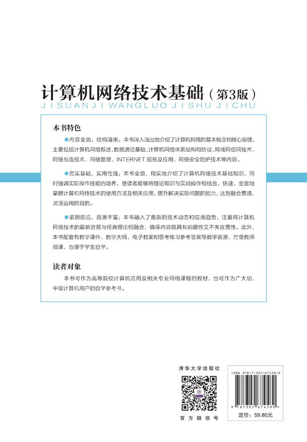 ●夯实基础,实用性强:本书全面、翔实地介绍了计算机网络技术基础知识,同时强调实际操作技能的培养,使读者能够将理论知识与实战操作相结合,快速、全面地掌握计算机网络技术的使用方法及相关应用,提升解决实际问题的能力,达到融会贯通、灵活运用的目的。