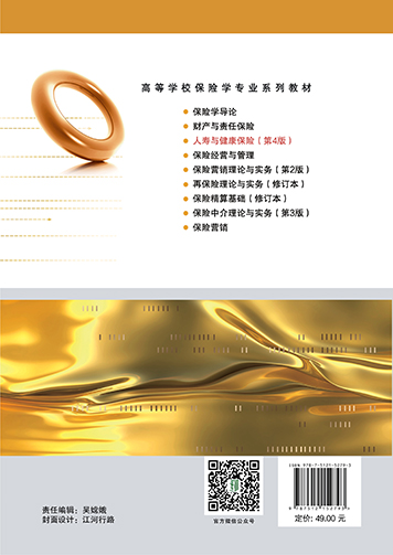 第4版前言 《人寿与健康保险》一书于2010年3月出版,得到了很多高校的认可,先后于2015年和于2019年出版第2版和第3版。近年,国家多次颁布保险法司法解释,保险业发展迅速,在此背景下,我们结合历年教学讲义对原书进行修订,新增专属商业养老保险、个人税优健康险发展主要历程及国家政策等内容。 《人寿与健康保险》(第4版)包括人身保险概述、保险的基本原则、人身保险合同、人寿保险、传统人寿保险、新型人寿保险、养老年金保险、人身意外伤害保险、健康保险、医疗保险、重大疾病保险、失能收入损失保险等12章内容,内容完整、语言简明,具有可读性和启发性。 本书可作为普通高等院校保险、精算和社会保障等专业的教学用书,也可作为经济类、管理类其他专业本科生及各种相关培训机构的教学用书,还可以作为保险公司广大实际工作者业务进修参考书以及广大自学人员的参考书。 本书另有配套电子课件、电子教案,以及综合模拟试题和答案,为教师授课提供便利,需求者可发邮件至183681911@qq.com索取。 作者 2024年6月