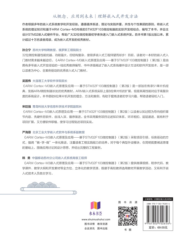 1.内容新颖,与时俱进。讲解STM32嵌入式系统原理及应用,带领读者跨入32位微控制器时代。