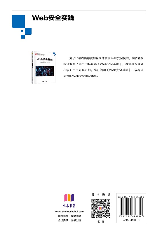 "本书是全面介绍Web安全实践知识的教材,共分为9章,主要涵盖了SQL注入漏洞、远程代码执行漏洞与远程命令执行漏洞、文件上传漏洞、文件包含漏洞、XSS漏洞、SSRF漏洞、反序列化漏洞、逻辑漏洞等内容。本书针对Web安全中的常见漏洞从原理 介绍、代码剖析、场景利用、常见绕过和漏洞防御等方面进行详细讲解。每章末尾均设有习题,帮助读者巩固所学内容。 本书适合网络空间安全及相关专业学生、Web开发人员、Web运维人员,以及Web安全爱好者学习使用,可作为高等院校相关专业的教材或参考书,也可供网络安全从业人员自学参考。 为了让读者能够更加全面地掌握Web安全技能,我们特别编写了本书的姊妹篇《Web安全基础》,诚挚建议读者在学习本书内容之前,先行阅读《Web安全基础》,以构建完整的Web安全知识体系。 "