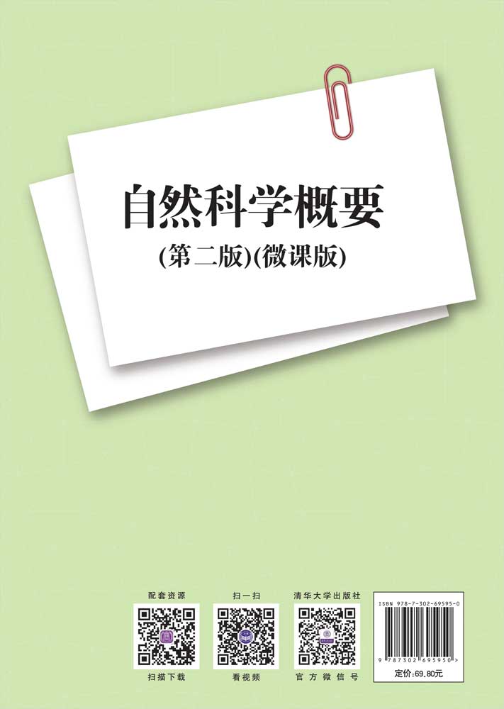 "《自然科学概要(第二版)(微课版)》概括和总结了近代和现代中外科学技术发展的主要成就。内容上按照物理学、化学、天文学、生物学、地球科学五大学科体系,以及近代、现代两个发展阶段进行编写,共分16章。每章计划2学时,课前有学习标准,课后有思考与练习题。编写本教材的目的在于通过学习科学家的创新过程,培养学生的科学精神和科学方法,启迪创新思维,提高科学文化素养。 本教材适用于高等院校本科自然科学类通识课程,也适用于专科、专升本学生科学文化素养教育的公共课程。 本书配套的电子课件、课后习题及答案、课堂测试习题及答案可以到http://www.tupwk.com.cn/downpage网址下载,也可以扫描前言中的二维码获取。扫描前言中的视频二维码可以直接观看教学视频。"