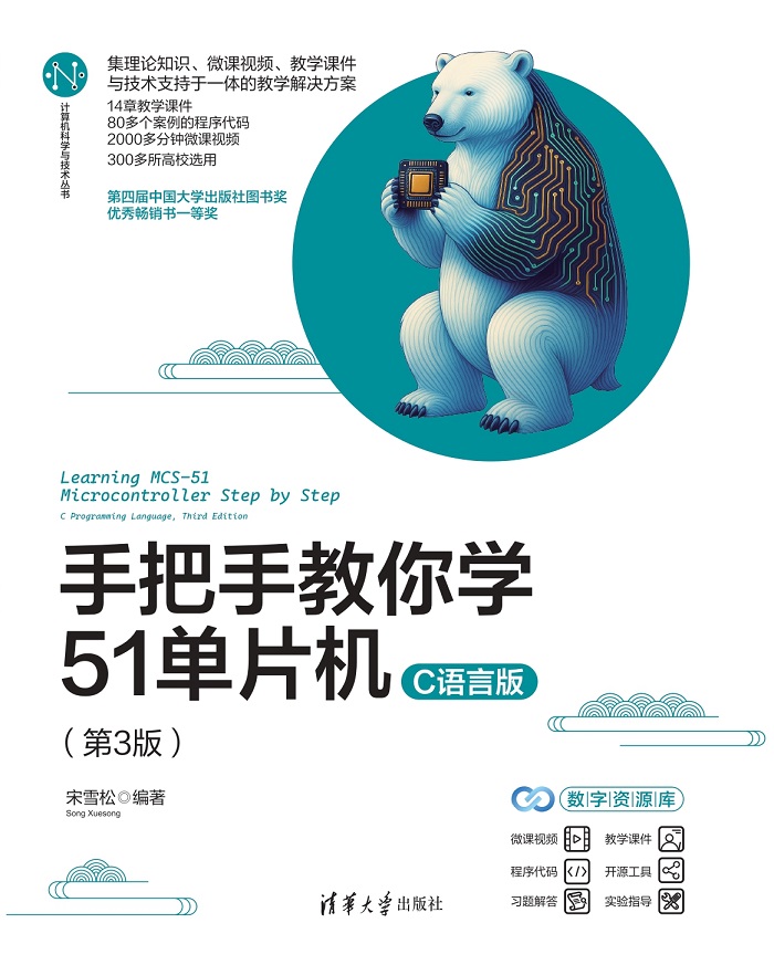 宋雪松:国内知名单片机培训专家,嵌入式产品技术总监。拥有多年一线产品研发经验,曾主持研发通信类、智能测量仪器等多款产品,在硬件电路设计和嵌入式软件设计方向有丰富的项目实战经验。2015年出版的《手把手教你学51单片机-C语言版》(第1版)获得第四届中国大学出版社畅销书一等奖。