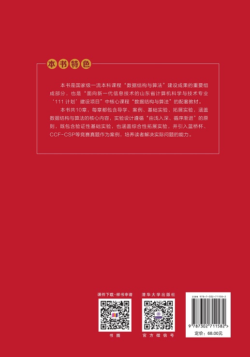 教材内容安排严谨、结构合理,既适合初学者系统掌握数据结构基础知识,也为有一定基础的学生提供了深入研究和工程实践的丰富素材。突出知识点之间的内在逻辑和应用场景,帮助学生构建从数据结构设计到数据工程实现的完整思维体系。教材积极响应国家关于计算机教育教学改革的政策要求,立足于培养既具扎实理论功底又具备实践操作能力的复合型人才,为学生在未来从事信息技术和数字经济相关工作奠定坚实基础。"