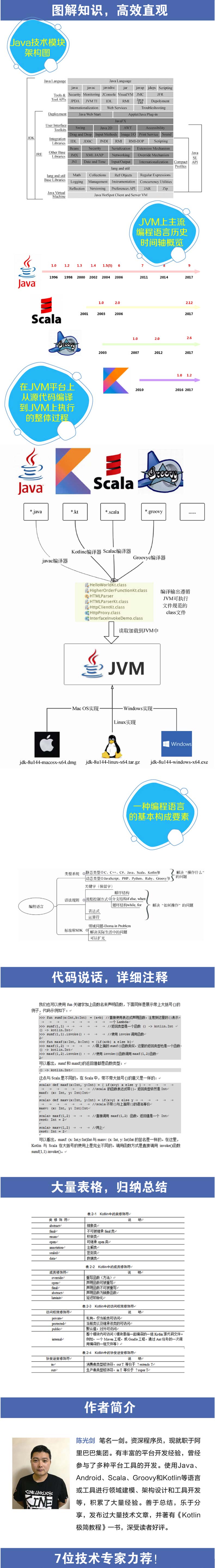 陈光剑 笔名一剑。资深程序员,现就职于阿里巴巴集团。有丰富的平台开发经验,曾经参与了多种平台工具的开发。使用Java、Android、Scala、Groovy和Kotlin等语言或工具进行领域建模、架构设计和工具开发等,积累了大量经验。善于总结,乐于分享,发布过大量技术文章,并著有《Kotlin极简教程》一书,深受读者好评。