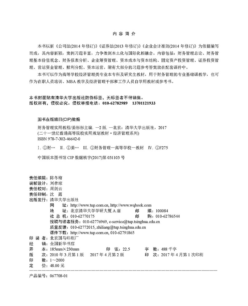(3) 根据最新法律法规编写。以新《公司法(2014年修订)》《证券法(2013年修订)》《企业会计准则(2014年修订)》为依据,结合我国经济体制改革以来企业财务管理的实践经验,吸收和借鉴现代企业行之有效的理财理论和方法,完善并充实教材的内容。