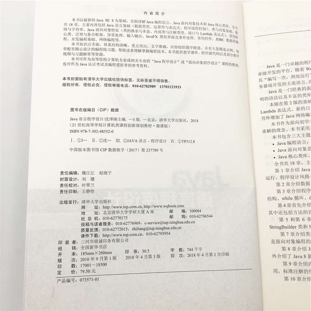 Java是一门卓越的程序设计语言,同时,它也是基于Java语言、从移动应用开发到企业级开发的平台。随着Web的发展,应用Web成为大型应用开发的主流方式,Java凭借其“编写一次,到处运行”的特性很好地支持了互联网应用所要求的跨平台能力,成为服务器端开发的主流语言。现在人类已进入移动互联网时代,而Java依然是当之无愧的主角。 Java是一门经典的面向对象语言,同时也是一门优秀的教学语言。Java拥有优雅和简明的语法以及丰富的类库,让编程人员尽可能地将精力集中在业务领域的问题求解上。 本版在第2版的基础上增加了Java SE 8的新特性,如接口的默认方法和静态方法、Lambda表达式、新的日期/时间API、Stream API,图形用户界面用JavaFX替换了Swing,另外增加了Java网络编程一章,其他章节也做了部分修订。 本书作为面向初学者的教程,编写和取材着重体现Java面向对象编程思想和面向问题求解的理念。本书采用基础优先的方式,从编程基础开始,逐步引入面向对象思想。 本书包含三大主题,这是一名专业Java程序员必须熟练掌握的内容。 * Java编程语言; * Java面向对象思想; * Java核心类库。 全书共18章,主要内容如下: 第1章介绍Java语言的起源和发展、Java开发环境的构建、简单Java程序的开发和运行、程序设计风格与文档以及集成开发环境Eclipse的使用。 第2章介绍数据类型、常用运算符、表达式以及数据类型的转换等。 第3章介绍程序的流程控制结构,包括选择结构和循环结构...