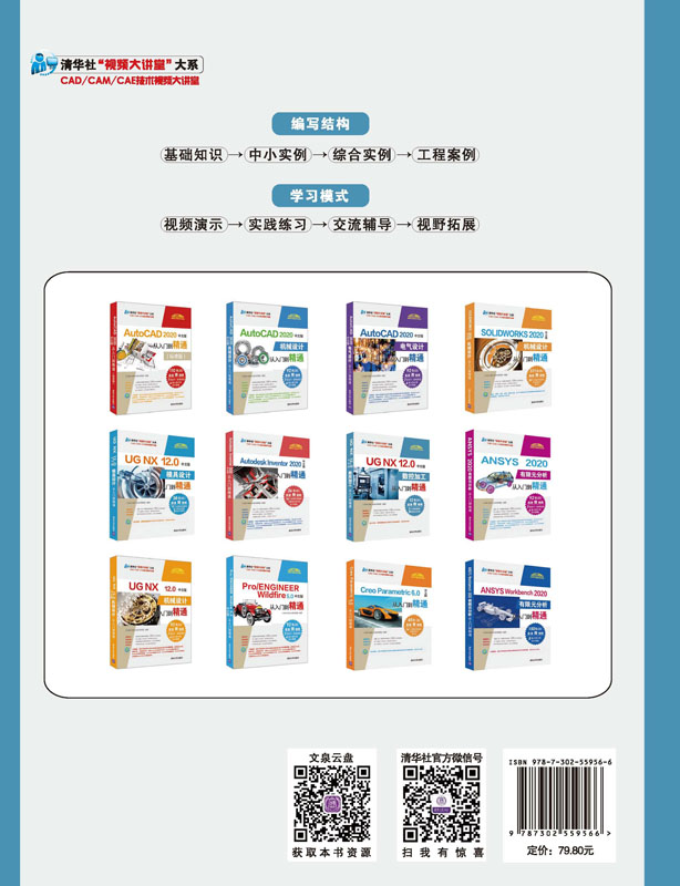 《UG NX 12.0中文版数控加工从入门到精通》全面讲解了应用UG NX 12.0进行数控加工的方法与技巧。全书按知识结构顺序分为4篇14章:第1篇为基础知识篇(第1~2章),包括数控加工基础、UG CAM入门等知识;第2篇为铣削加工篇(第3~7章),包括铣削公用参数、平面铣、型腔铣、深度轮廓铣和插铣、多轴铣等知识;第3篇为车削加工篇(第8~10章),包括车削加工基础、外径车、车螺纹和中心线钻孔等知识;第4篇为综合实例篇(第11~14章),包括铣削加工某电器产品外壳凸模、铣削加工齿轮、铣削加工底座和车削加工综合实例等知识。另外,本书随书资源中还配备了极为丰富的学习资源,具体内容如下。 1. 12集高清同步微课视频,可像看电影一样轻松学习,然后对照书中实例进行练习。 2. 7个经典中小型案例,用案例学习上手更快,更专业。 3. 4种不同类型的综合实例练习,学以致用,动手会做才是硬道理。 4. 附赠5种类型数控加工的源文件和动画演示,可以拓宽视野,增强实战能力。 5. 全书实例的源文件和素材,方便按照书中实例操作时直接调用。 全书实例丰富,讲解透彻,适合各高校机械和工业设计相关专业学生作为数控加工课程的辅导教材和教学参考书,也可以作为从事数控加工相关工作人员的自学指导书。