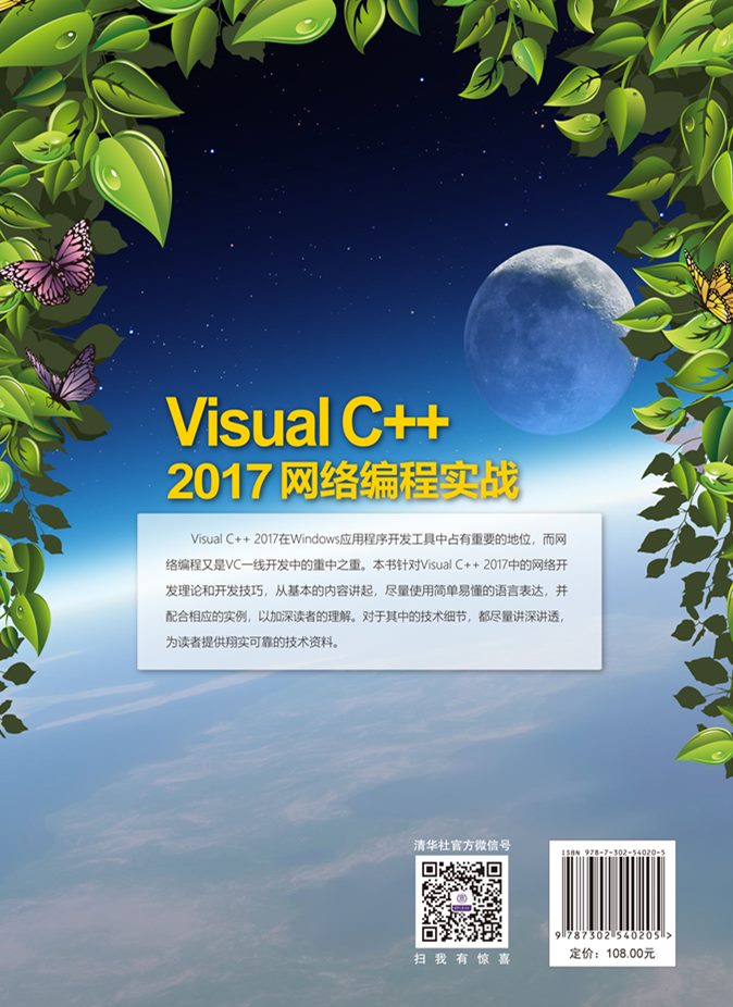 本书从初学者的角度出发,以通俗易懂的语言,配合丰富多彩的实例,详细地介绍了使用Visual C++ 2017进行网络编程应该掌握的各方面知识,以及网络编程的常见场景和较难技术,快速提高开发技能。 全书共分18章,内容包括TCP/IP协议、本机网络信息编程、多线程编程、套接字编程、简单网络服务器设计、基于IO模型的网络开发、网络性能工具iperf的使用、WinInet开发浏览器实例、HTTP编程、Web编程、中国象棋网络对弈实例、winpcap编程、ICE网络编程和IPv6网络编程。 本书适合Visual C++网络编程初学者阅读,可供开发人员查阅参考,也适合作为高等院校相关专业的教学参考书。