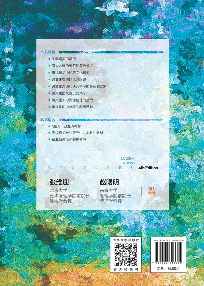 本书自2005年初版以来,深受广大读者好评,对跨文化学科领域和实际工作产生了较大的影响。 本书将以文化为着眼点,用经过反复检验的跨文化理论,去探索个体和群体层次的文化差异,解释我们在平日工作和生活中观察到的各种文化现象和文化冲突,并预测来自不同文化的个体之间、人群之间和组织之间可能出现的文化障碍,从而将貌似杂乱无章的文化差异用简洁深刻的理论来规整和阐述。本书的主要目的是通过系统介绍有关跨文化管理的知识,帮助读者学习跨文化管理中的有效策略和技巧,使其更加游刃有余地应对各种可能出现的跨文化管理难题,在世界经济的舞台上发挥积极的作用。 全书用生动翔实的案例、引人入胜的练习和角色模拟,以及典型有趣的影视作品来讲述跨文化管理这个严肃话题,使读者在跨文化的旅程中,不会有枯燥劳累之感,而更多的是精神的愉悦。 本书可用作MBA、EMBA教材,高等院校相关专业研究生、本科生教材,以及企业相关培训的参考书。 本书提供了配套的教学课件、课程大纲、拓展资料及案例等,读者可通过扫描前言中的二维码免费下载。