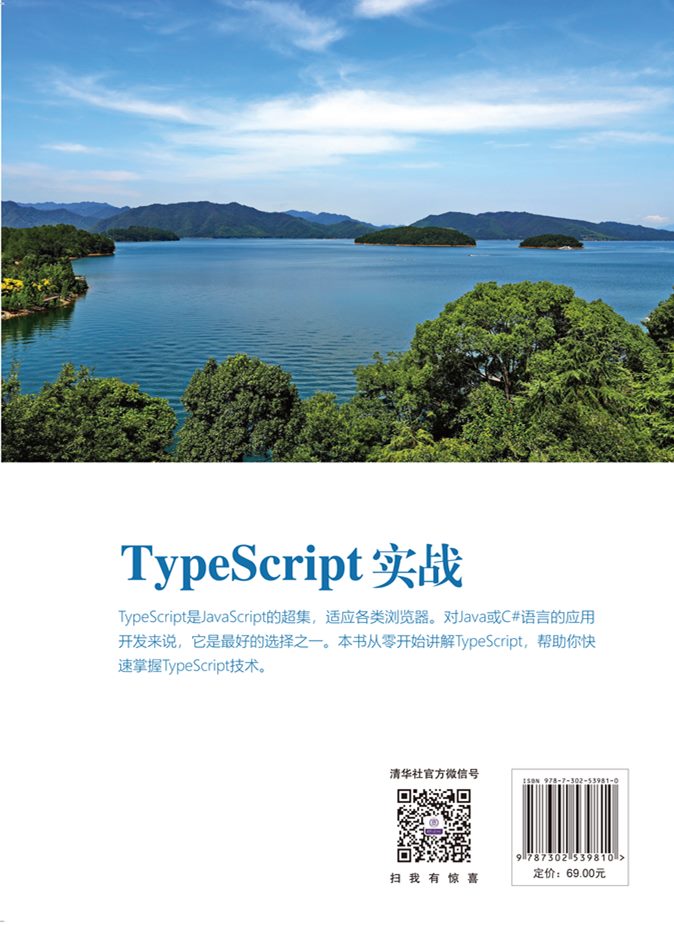 前 言 读懂本书 TypeScript是什么? TypeScript是微软开发的一款开源的编程语言。它是JavaScript的超集,本质上是在JavaScript语言上添加了可选的静态类型和基于类的面向对象编程特征。 —微软出品,必属精品。 TypeScript对比JavaScript,有哪些优势? 首先,TypeScript中的类型检查可以在编译阶段进行语法分析,从而检测语法错误,同时提高代码可读性。其次,TypeScript可以用面向对象进行编程,支持类、接口、命名空间以及模块。再次,TypeScript有强大的IDE工具支持,提供先进的自动完成、导航和重构工具,而这些工具几乎完全满足了大型项目的需求。最后,TypeScript可以兼容绝大部分JavaScript语法,同时可以编译为特定版本的JavaScript。 —TypeScript就是为构建大型可扩展Web应用而生的。 TypeScript可以干什么? TypeScript可以在任何支持JavaScript的环境下运行,无须额外配置。大名鼎鼎的Visual Studio Code就是用TypeScript编写的,同时新版本的angular和Vue 3.0都选用TypeScript作为编写语言。 —只要敢想,TypeScript让一切皆有可能。 本书真的适合你吗? 如果你对编程有一定兴趣,了解基本的HTML、CSS和JavaScript语法,心怀用代码改变世界的理想,励志构建可扩展易维护的Web应用,那么本书很适合你。本书作为TypeScript的入门教材,由浅入深地对TypeScript...